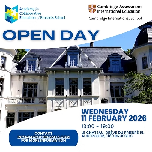 ACE of Brussels est une école internationale privée située à Auderghem, offrant un enseignement inclusif et hautement personnalisé aux élèves âgés de 3 à 19 ans. L’école suit le Cambridge International Curriculum et se distingue par la flexibilité de ses parcours d’apprentissage, ses petits groupes d’élèves et sa forte attention portée à la progression individuelle.
