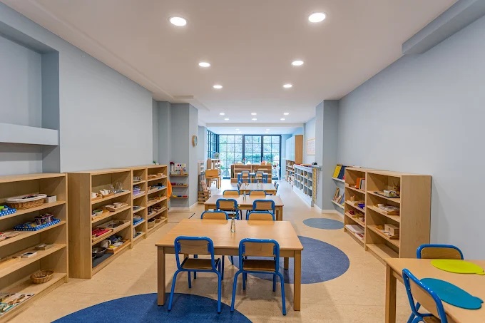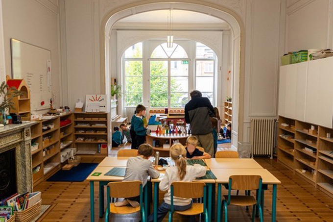 - Les ateliers Montessori, communs à la maternelle et au primaire, réunissent 18 à 20 élèves encadrés simultanément par un enseignant francophone et un enseignant anglophone.